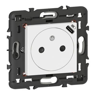 Afficher tous les détailsPrise de courant surface Céliane avec chargeur USB intégré type C - livrée avec support et enjoliveur blanc - Legrand 068127