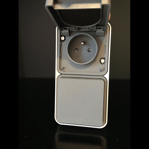 Prise de courant triple 2P+T étanche cubyko complet gris HAGER WNC123