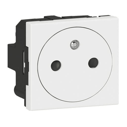 La prise de courant 2P de référence Legrand 067110 est équipée d'éclips de protection et ne doit s’utiliser qu’en cas de rénovation. 2 pôles Tensi...