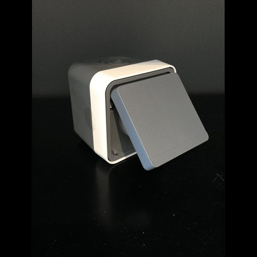 Prise de courant 2P+T et interrupteur étanche saillie Mureva Styl - IP55 gris complet - Schneider MUR36025