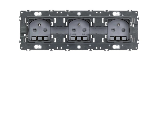 Cette prise triple Hager de la gamme Gallery est à associer à une plaque et des enjoliveurs de la même gamme.