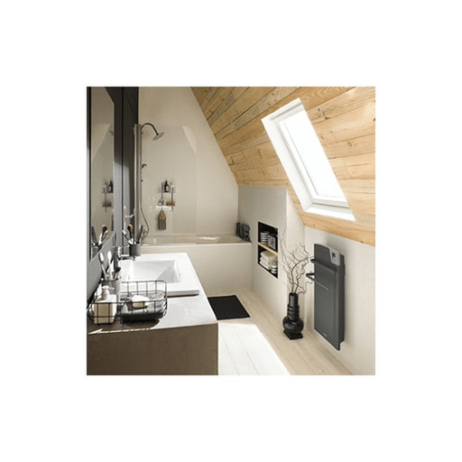 Afficher tous les détailsAtlantic sèche-serviettes Serenis 1500W connecté graphite soufflerie mât à droite 850509