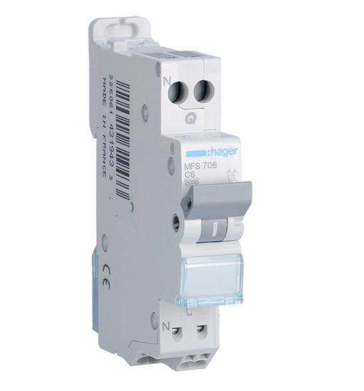 Disjoncteur Phase+Neutre 3kA courbe C 6A SanVis HAGER MFS706