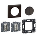 Cet ensemble inclut le support, deux mécanismes, l'enjoliveur et la plaque de finition noire pour une installation sans achat supplémentaire.