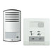 1 poste intérieur mains-libres (2 contacts secs pour fonctions supplémentaires). Dimensions : 124 x 128 x 27 mm